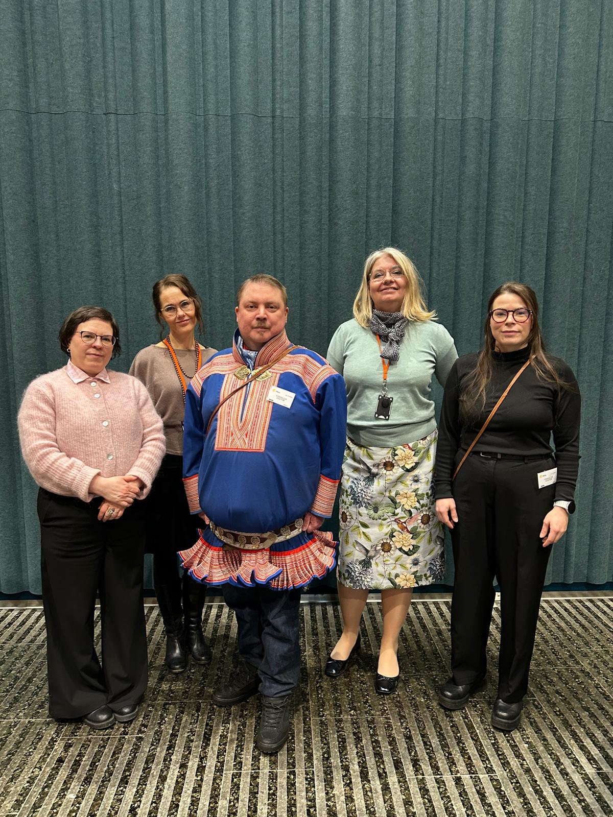 Kooveest Riitta Lehtola-Kosonen, Tuomas Aslak Juuso, Anni Koivisto sehe sosiaal- já tiervâsvuotâministeriöst Veli-Mikko Niemi já Anna Cantell-Forsbom.